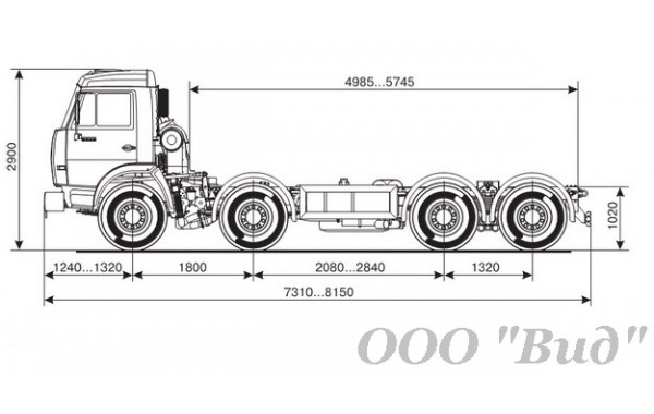 Колесная формула — 8х4 Грузоподъёмность (нагрузка на седло), кг — 22000 Допустимая полная масса а/м, кг — 31000 Тип кабины — Короткая Двигатель — 740.62-280 Число передач КП — 10 База, мм — 2080 Длина, мм — 7310